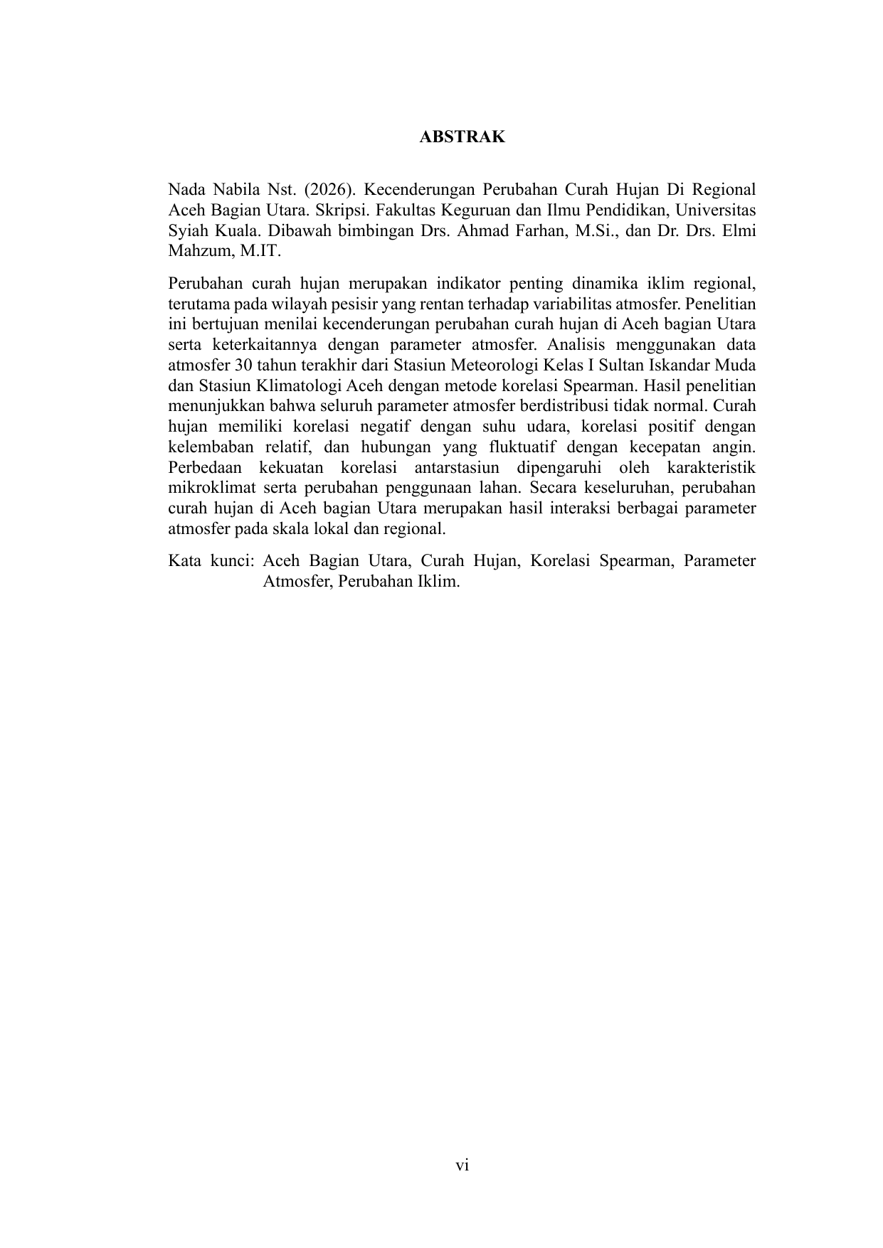 NADA NABILA NST, KECENDERUNGAN PERUBAHAN CURAH HUJAN DI REGIONAL ACEH BAGIAN UTARA. Banda Aceh Fakultas KIP,2026