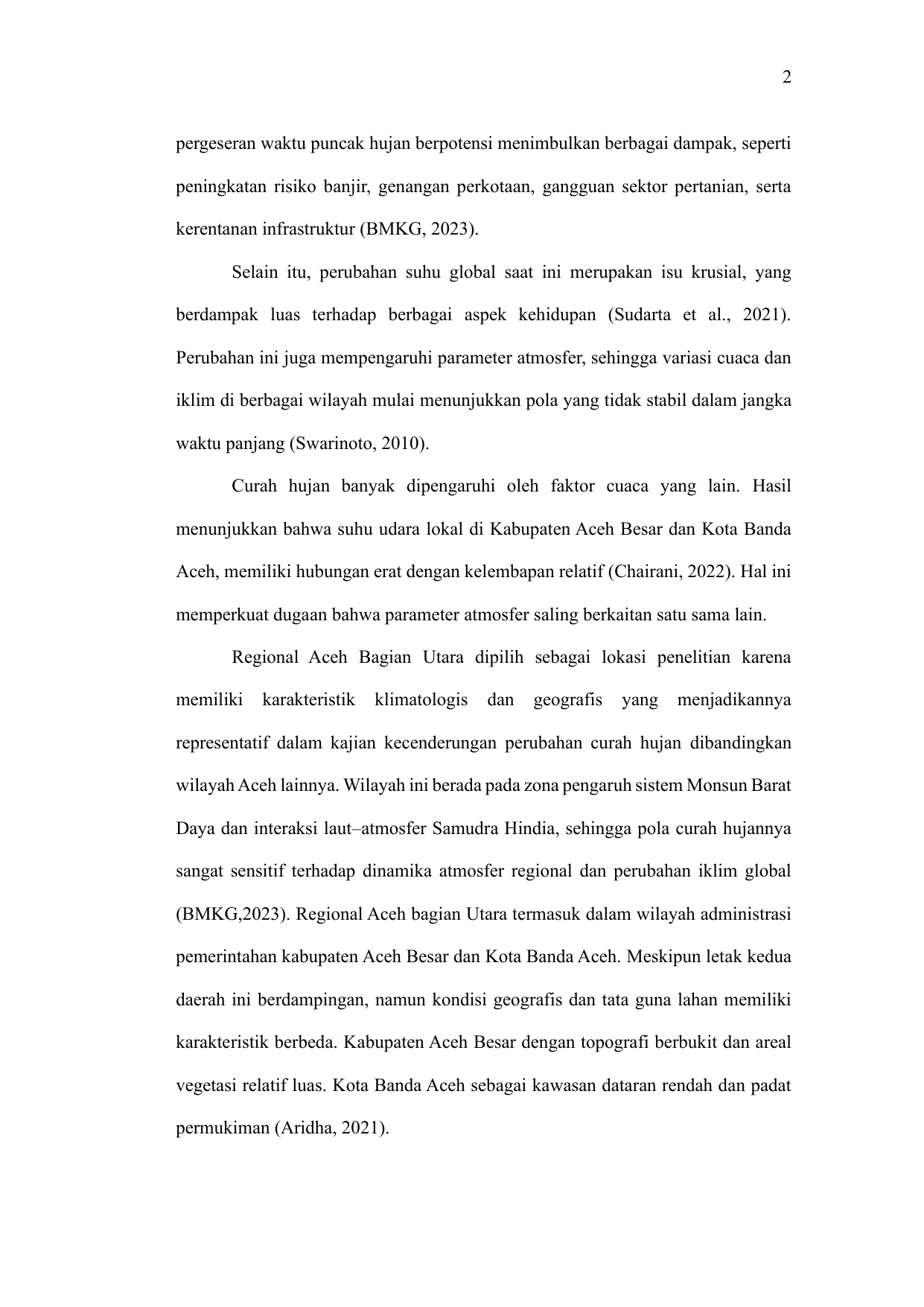 Baca Juga : VALIDASI DATA CURAH HUJAN SATELIT GPM-IMERG DAN CHIRPS TERHADAP DATA CURAH HUJAN OBSERVASI LAPANGAN DI ACEH UTARA (Istia Masyafira, 2025)