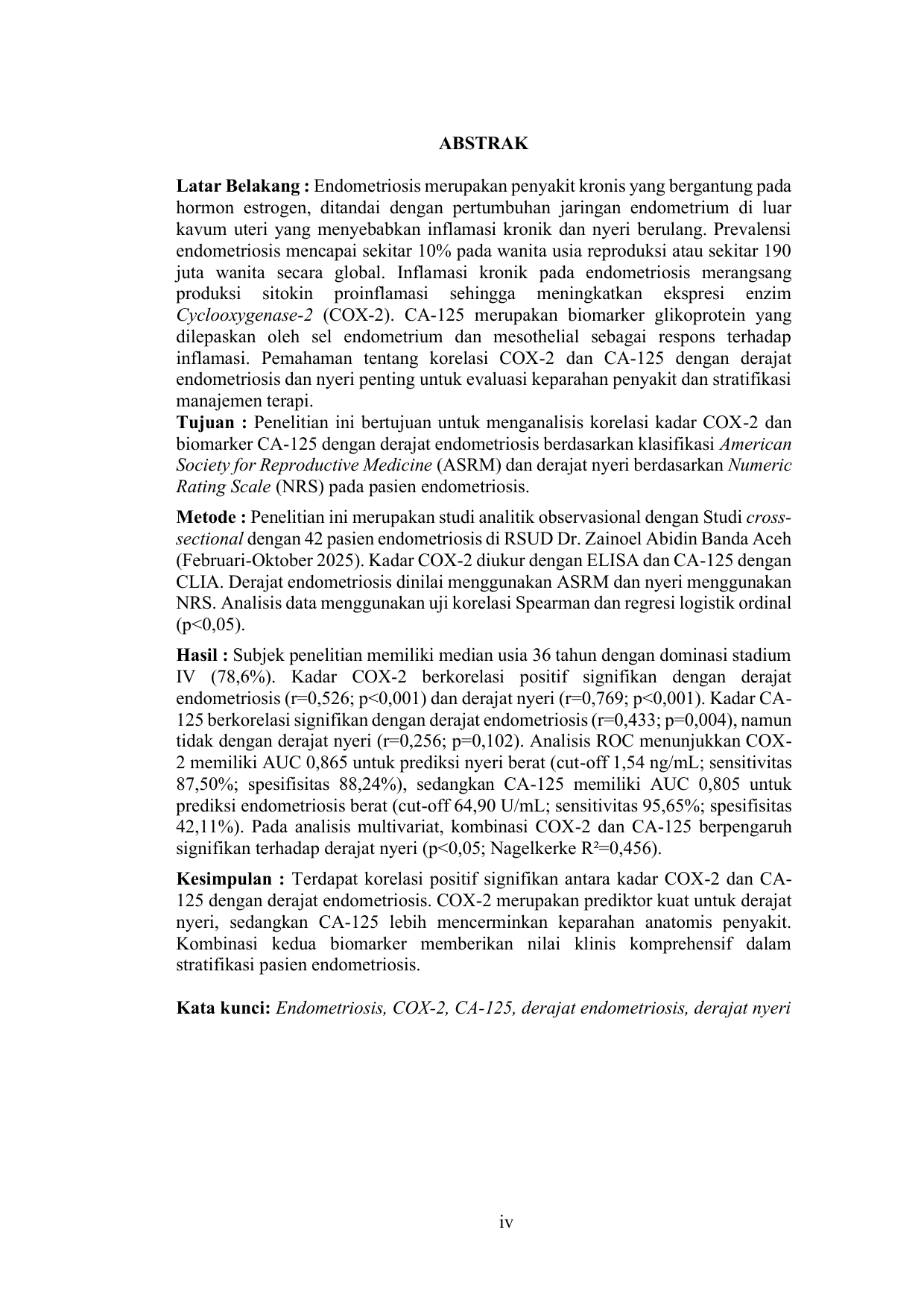 Baca Juga : HUBUNGAN INTERLEUKIN-6 DAN CA-125 DENGAN STADIUM ENDOMETRIOSIS DAN DERAJAT NYERI PADA PASIEN ENDOMETRIOSIS (Regina Marhadisony, 2025)