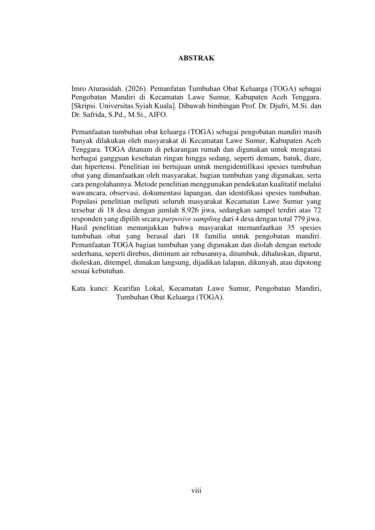 Baca Juga : INVENTARISASI DAN PERSEPSI MASYARAKAT TERHADAP PEMANFAATAN TUMBUHAN OBAT DI SEKITAR KAWASAN HUTAN KECAMATAN BLANGJERANGO KABUPATEN GAYO LUES (ALKI DERMAWAN ABAS, 2025)