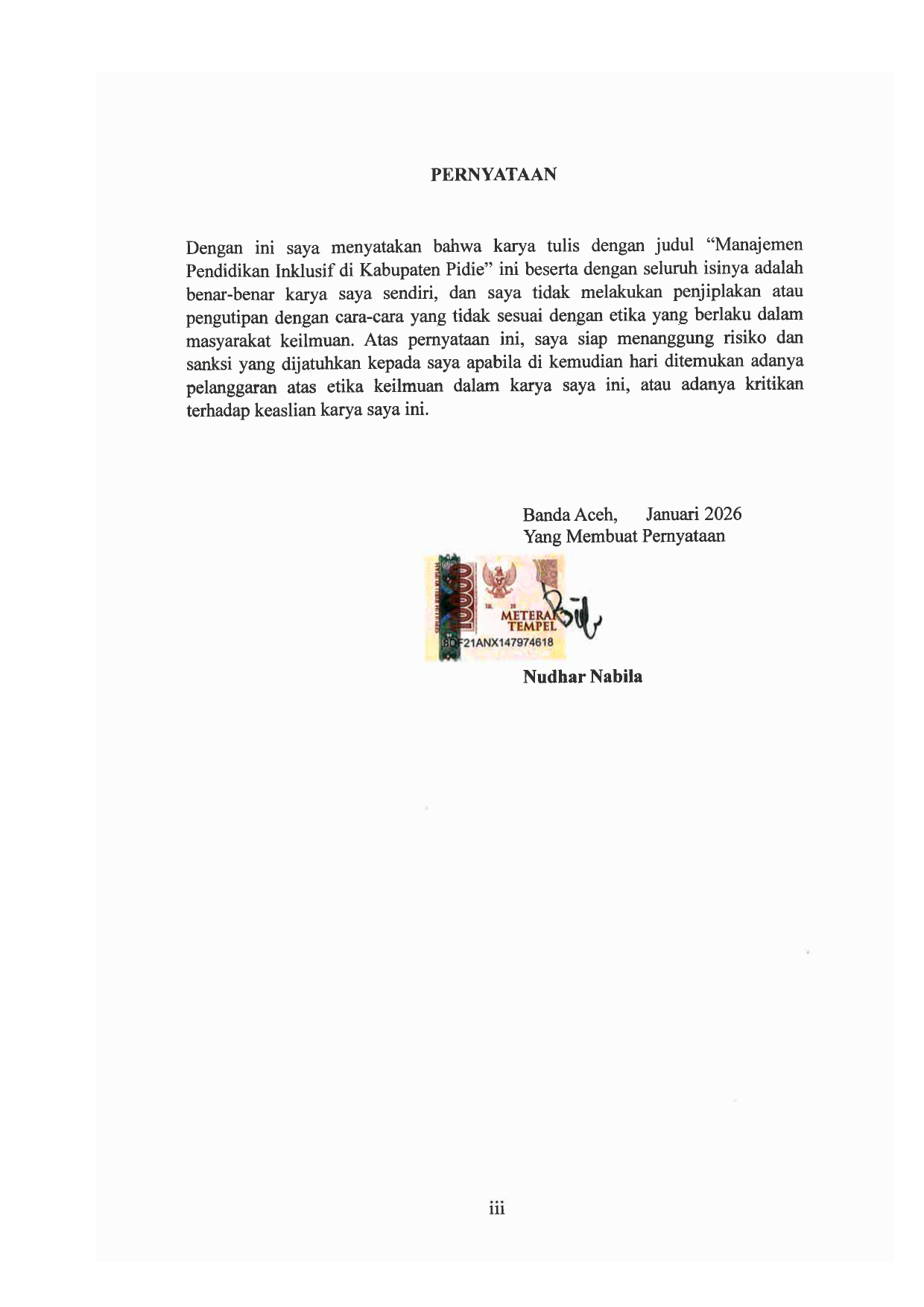 Nudhar Nabila, MANAJEMEN PENDIDIKAN INKLUSIF DI KABUPATEN PIDIE. Banda Aceh Fakultas Pasca Sarjana,2026