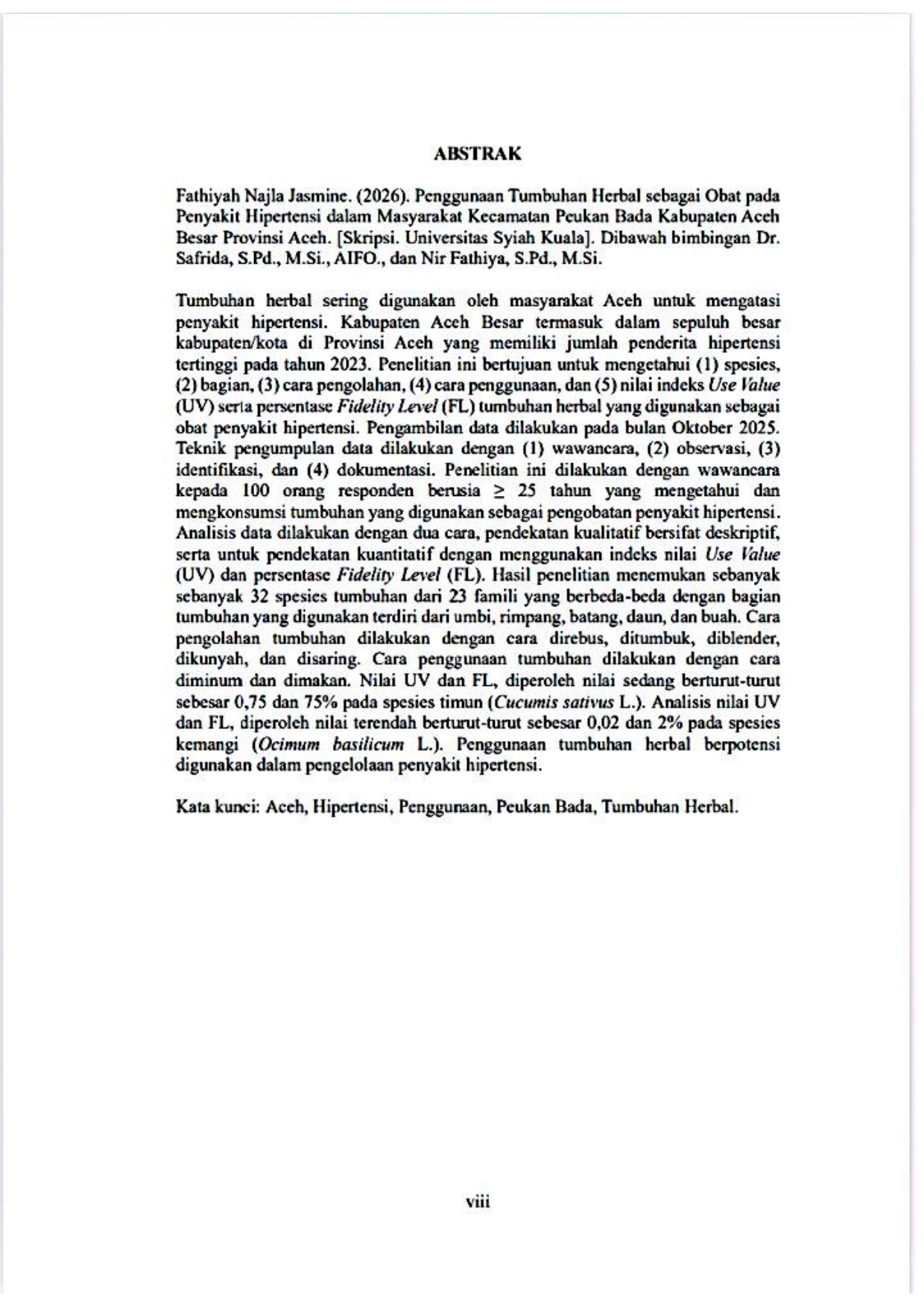 Baca Juga : PENGGUNAAN TUMBUHAN SEBAGAI OBAT PENYAKIT DIABETES DI KECAMATAN KAWAY XVI KABUPATEN ACEH BARAT PENGGUNAAN TUMBUHAN SEBAGAI OBAT PENYAKIT DIABETES DI KECAMATAN KAWAY XVI KABUPATEN ACEH BARAT (Cut Tiandary Yusar, 2016)
