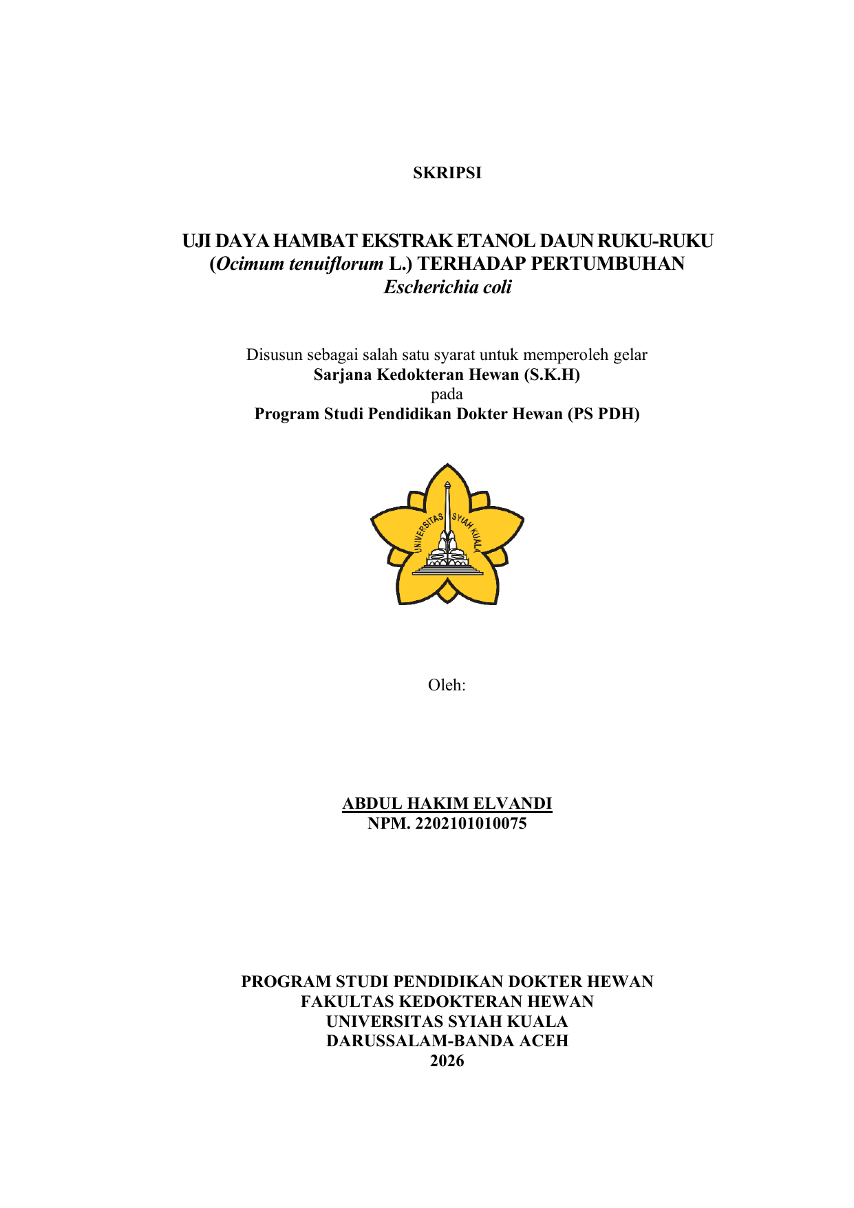 Baca Juga : UJI DAYA HAMBAT EKSTRAK ETANOL DAUN RUKU-RUKU (OCIMUM TENUIFLORUM L.) TERHADAP PERTUMBUHAN CANDIDA ALBICANS (NIDA FAIZAH BINTI HUSNI, 2026)