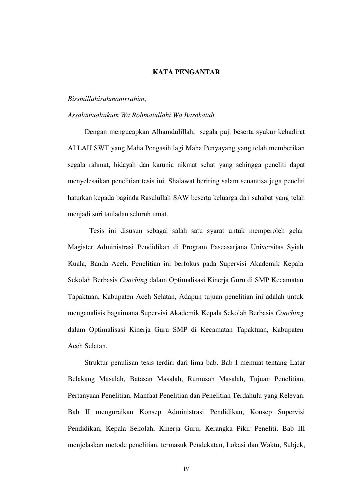 Tia Juliana, SUPERVISI AKADEMIK KEPALA SEKOLAH BERBASIS COACHING DALAM OPTIMALISASI KINERJA GURU DI SMP KECAMATAN TAPAKTUAN KABUPATEN ACEH SELATAN. Banda Aceh Program Studi Magister Administrasi Pendidikan Unsyiah,2026