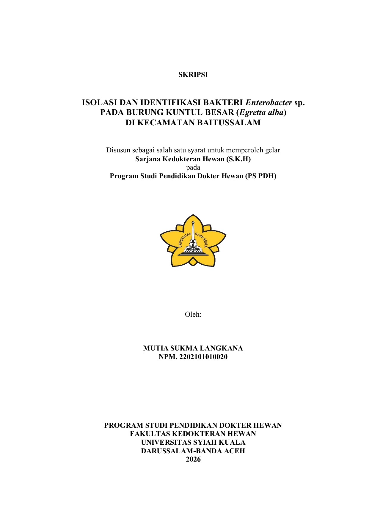 Baca Juga : ISOLASI DAN IDENTIFIKASI BAKTERI ENTEROBACTER SP. PADA BURUNG KUNTUL BESAR (EGRETTA ALBA) DI KECAMATAN BAITUSSALAM (MUTIA SUKMA LANGKANA, 2026)