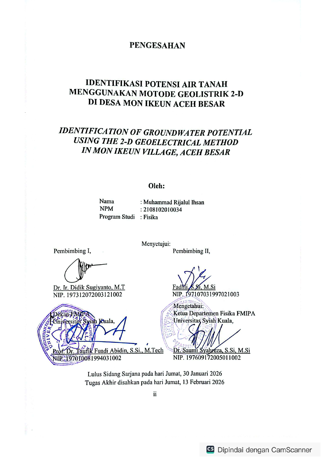 Baca Juga : INTERPRETASI STRUKTUR BAWAH PERMUKAAN UNTUK POTENSI AIR TANAH MENGGUNAKAN METODE ELECTRICAL RESISTIVITY TOMOGRAPHY (ERT) DI DESA MON IKEUN, ACEH BESAR (Adila Latifa, 2025)