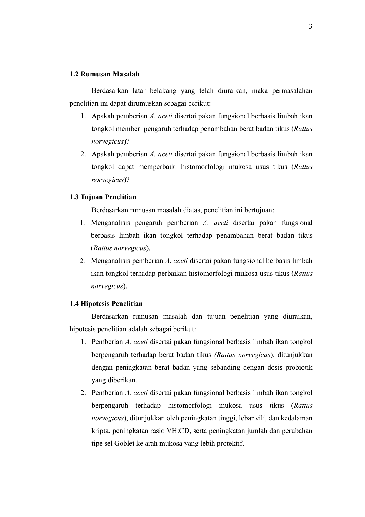 Baca Juga : ANALISIS HISTOMORFOMETRI JEJUNUM TIKUS PUTIH (RATTUS NORVEGICUS) YANG DIBERI KANDIDAT PROBIOTIK BAKTERI ASAM ASETAT ISOLAT CUKA AREN DAN DITANTANG ESCHERICHIA COLI (MARSYA FARA FADILA, 2026)