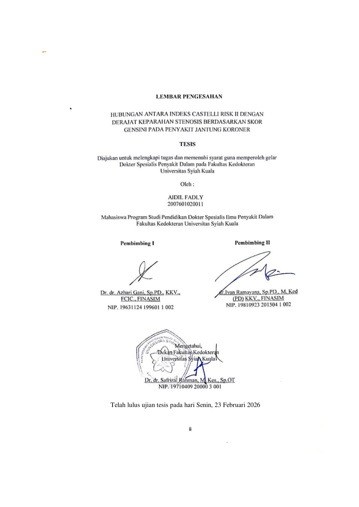 Baca Juga : HUBUNGAN ANTARA INDEKS ATEROGENIK PLASMA TERHADAP DERAJAT KEPARAHAN STENOSIS BERDASARKAN SKOR GENSINI PADA PENYAKIT JANTUNG KORONER (Umar Ar Rasyidin Lubis, 2026)