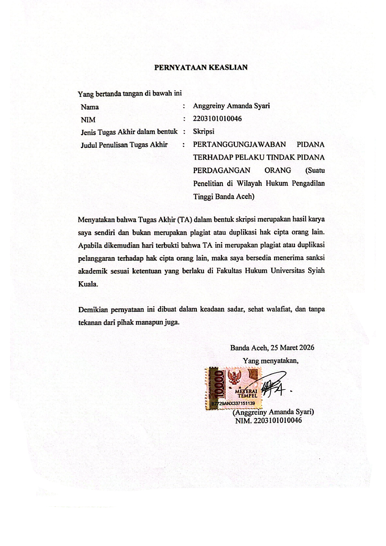 Baca Juga : PERTANGGUNGJAWABAN PIDANA PELAKU TINDAK PIDANA PERDAGANGAN HANDPHONE YANG TIDAK SESUAI DENGAN PERSYARATAN TEKNIS (STUDI PADA PENGADILAN NEGERI BANDA ACEH) (M. YULIAN ALFARIZ, 2025)