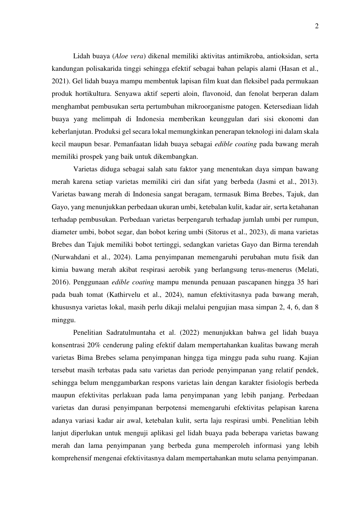 An Nisa Zuhara, KAJIAN VARIETAS DAN LAMA PENYIMPANAN BAWANG MERAH (ALLIUM CEPA L. VAR. AGGREGATUM) TERHADAP SIFAT FISIK DAN KIMIA DENGAN LAPISAN EDIBLE COATING LIDAH BUAYA (ALOE VERA). Banda Aceh Fakultas Pertanian,2026