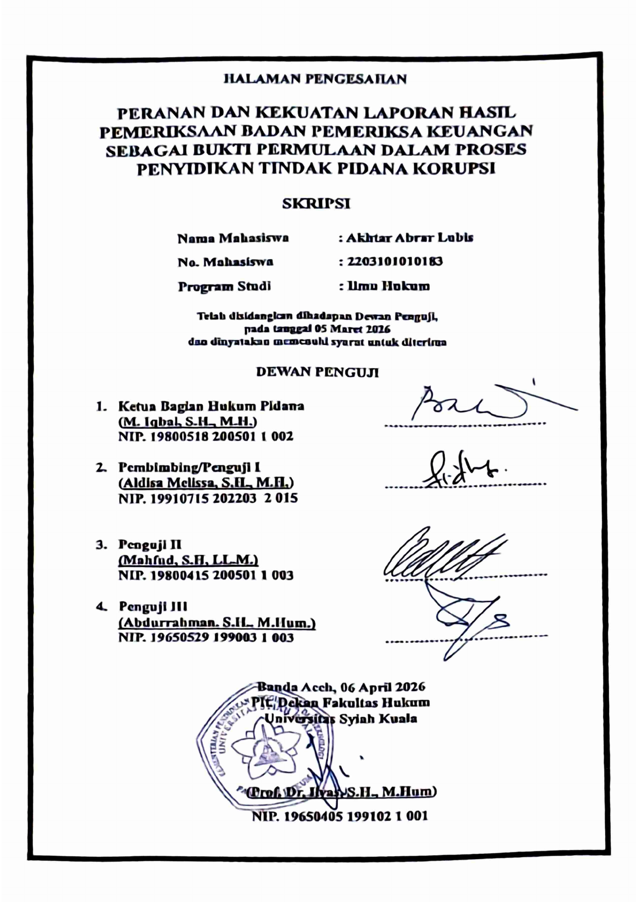 Baca Juga : PENETAPAN STATUS TERSANGKA DALAM PROSES PENYIDIKAN PADA PERKARA TINDAK PIDANA KORUPSI (SUATU PENELITIAN DI WILAYAH HUKUM KEPOLISIAN DAERAH ACEH) (Tasniem Salsa Biela Putra, 2026)