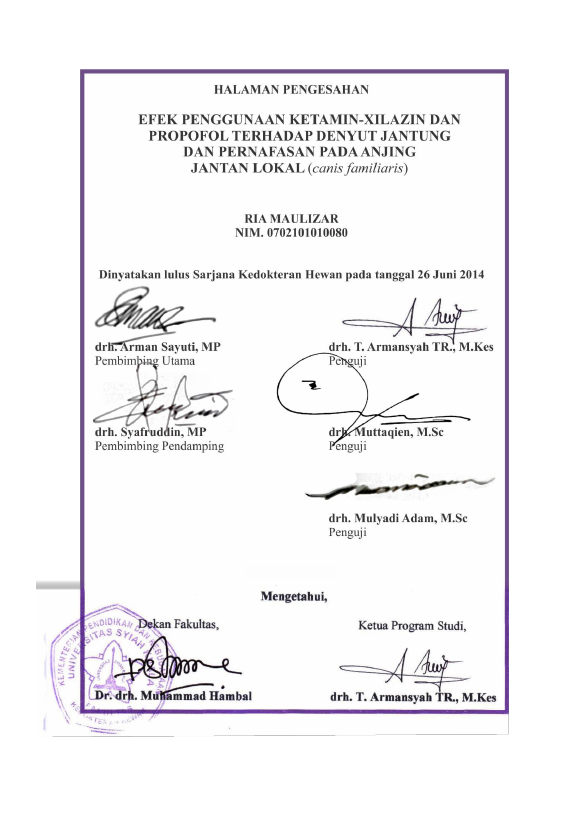Baca Juga : PERBANDINGAN ONSET DAN SEDASI KETAMIN-XYLAZIN DAN PROPOFOL PADA ANJING JANTAN LOKAL (CANIS FAMILIARIS) (Chairul Fadhli, S.KH, 2015)