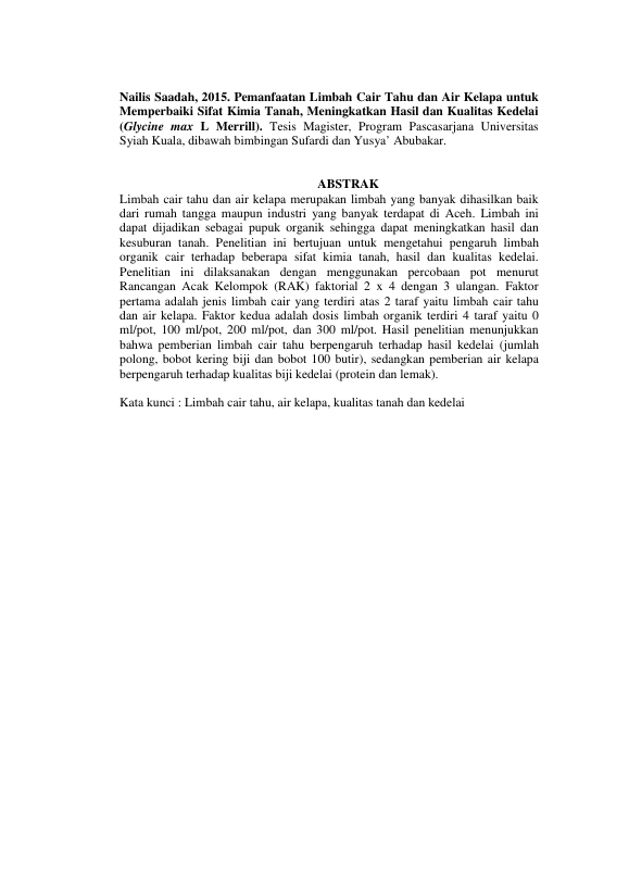 Baca Juga : PEMANFAATAN LIMBAH TAHU UNTUK MEMPERBAIKIRNSIFAT KIMIA DAN BIOLOGI TANAH PADA TANAMAN JAGUNG MANIS (ZEA MAYS VAR. SACCHARATA STURT L.) (Hidayani, 2014)