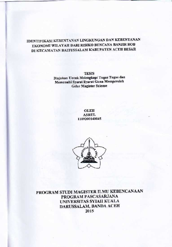 Asrul, IDENTIFIKASI KERENTANAN LINGKUNGAN DAN KERENTANAN EKONOMI WILAYAH DARI RISIKO BENCANA BANJIR ROB DI KECAMATAN BAITUSSALAM KABUPATEN ACEH BESAR. Banda Aceh Universitas Syiah Kuala,2015