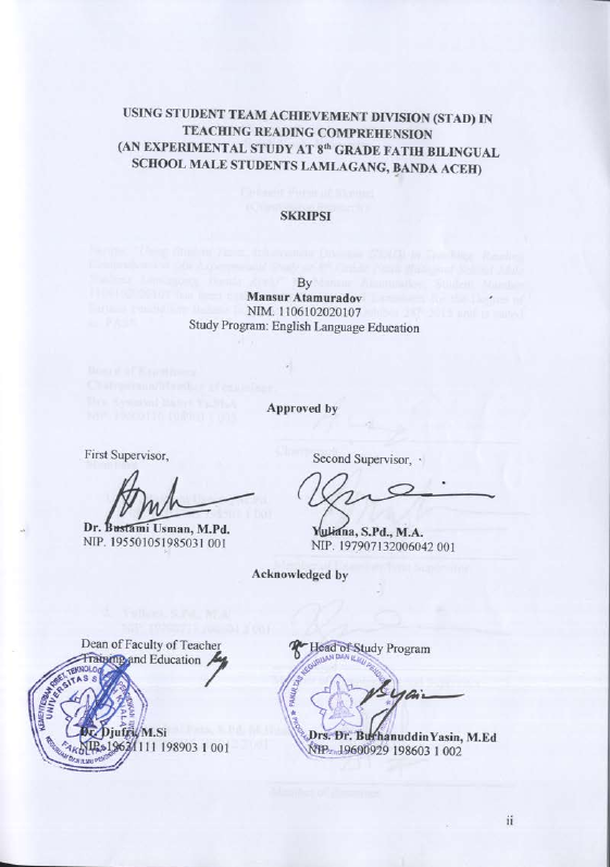 Baca Juga : TEACHING LISTENING BY USING STUDENT TEAM ACHIEVEMENT DIVISION(AN EXPERIMENTAL STUDY OF SECOND GRADE STUDENTS AT MAN 1 SIGLI) (Fittri Amriani, 2015)