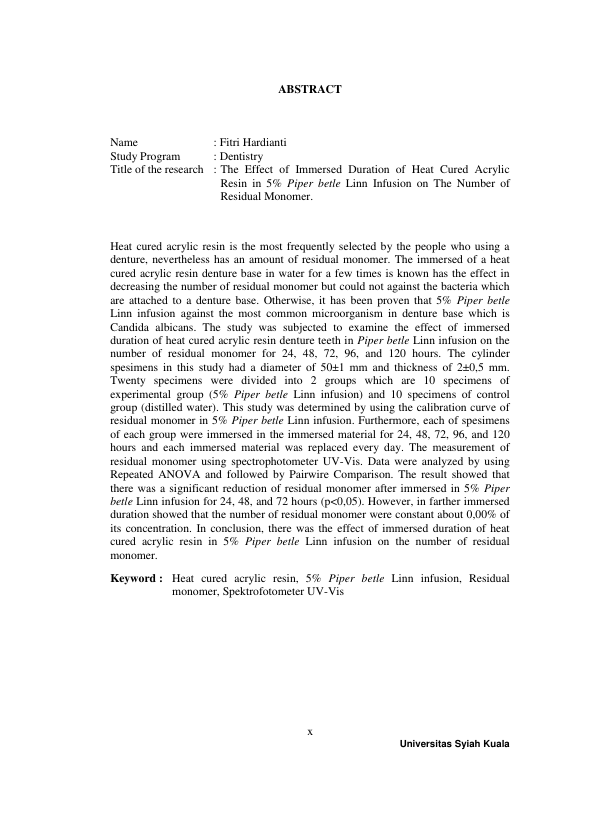 Baca Juga : PENGARUH DURASI PERENDAMAN RESIN AKRILIK HEAT CURED DALAM AIR REBUSAN DAUN SIRIH (PIPER BETLE LINN) 25%TERHADAPPERUBAHAN DIMENSI (MELY ASMITHA JZ, 2016)