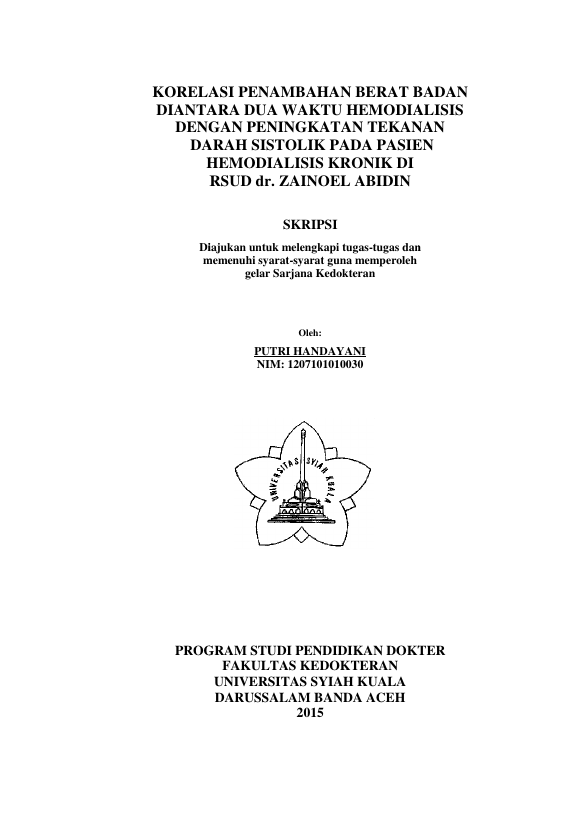 Baca Juga : HUBUNGAN INDEKS MASSA TUBUH DENGAN TEKANAN DARAH SISTOLIK PADA PASIEN PENYAKIT GINJAL KRONIK YANG MENJALANI HEMODIALISIS DI RSUD DR. ZAINOEL ABIDIN (Sitti Maziyyah Aini, 2016)