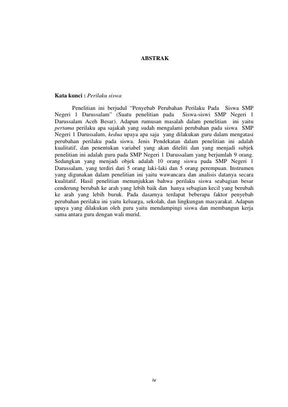 Halim Murtadha, PENYEBAB PERUBAHAN PERILAKU PADA SISWA SMP NEGERI 1 DARUSSALAM. Banda Aceh Universitas Syiah Kuala,2015