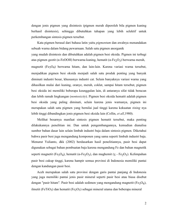 Baca Juga : SINTESIS DAN KARAKTERISASI PIGMEN MERAH HEMATIT (?-FE2O3) DARI PASIR BESI LAMPANAH ACEH BESAR (Nurul Fajri, 2016)