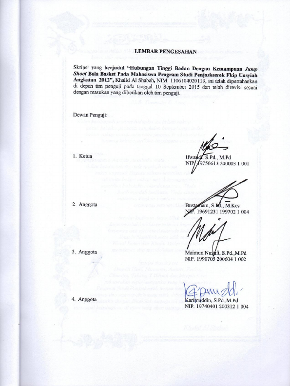 KHALID AL SHABAH, HUBUNGAN TINGGI BADAN DENGAN KEMAMPUAN JUMP SHOOT BOLA BASKET PADA MAHASISWA PROGRAM STUDI PENJASKESREK FKIP UNSYIAH ANGKATAN 2012. Banda Aceh Fakultas KIP,2015