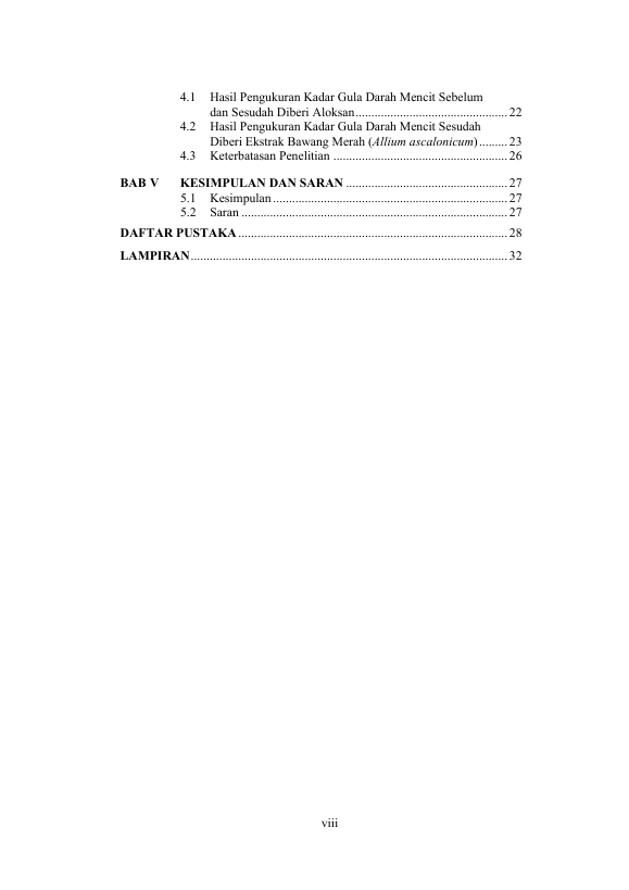 Fitri Meutia Donytasari, PENGARUH PEMBERIAN EKSTRAK BAWANG MERAH (ALLIUM ASCALONICUM) TERHADAP PENURUNAN KADAR GULA DARAH MENCIT YANG DIINDUKSI ALOKSAN. Banda Aceh Fakultas Kedokteran,2013