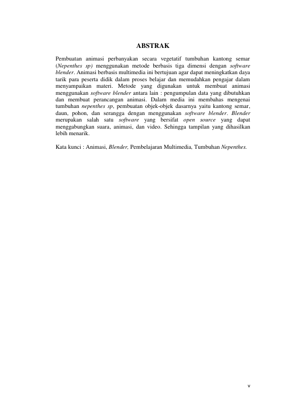 JUNIAR SYANTI, ANIMASI PERBANYAKAN SECARA VEGETATIF (STEK) PADA TUMBUHAN KANTONG SEMAR (NEPENTHES SP) MENGGUNAKAN SOFTWARE BLENDER. Banda Aceh Universitas Syiah Kuala,2016