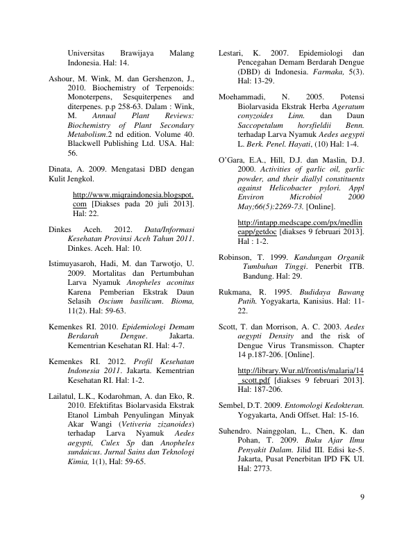 FAISAL SETIAWAN, Pengaruh Minyak Atsiri Bawang Putih (Allium sativum L.) Terhadap Mortalitas Larva Nyamuk Aedes Aegypti L. Instar III. Banda Aceh Universitas Syiah Kuala,2013