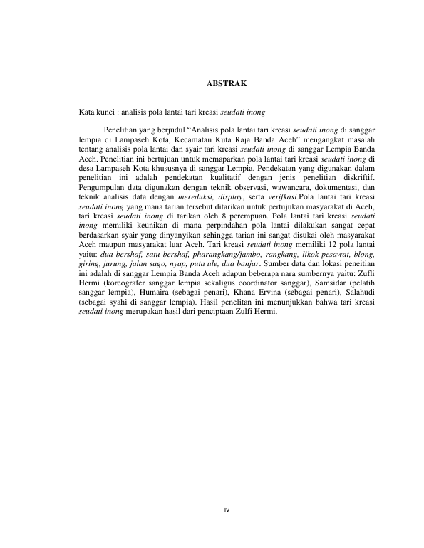 Meipur Yanti, ANALISIS POLA LANTAI TARI KREASI SEUDATI INONG DI SANGGAR LEMPIA BANDA ACEH. Banda Aceh Universitas Syiah Kuala,2016