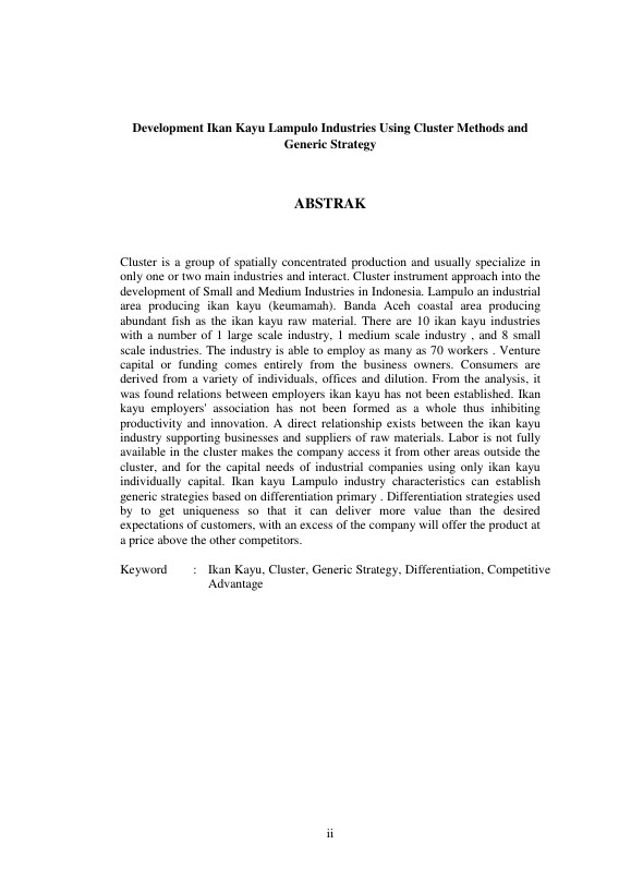 Zulfan Helmi, PENGEMBANGAN INDUSTRI IKAN KAYU LAMPULO MENGGUNAKAN METODE KLASTER DAN STRATEGI GENERIK. Banda Aceh Universitas Syiah Kuala,2016