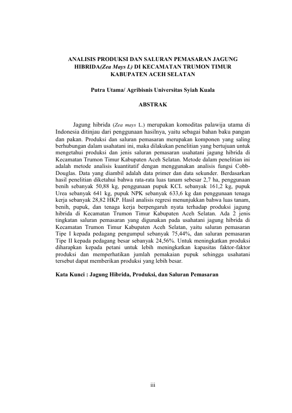 Baca Juga : ANALISIS KELAYAKAN USAHATANI JAGUNG HIBRIDA DI KECAMATAN TRUMON TENGAH KABUPATEN ACEH SELATAN (Muhammad Riski Pratama, 2019)