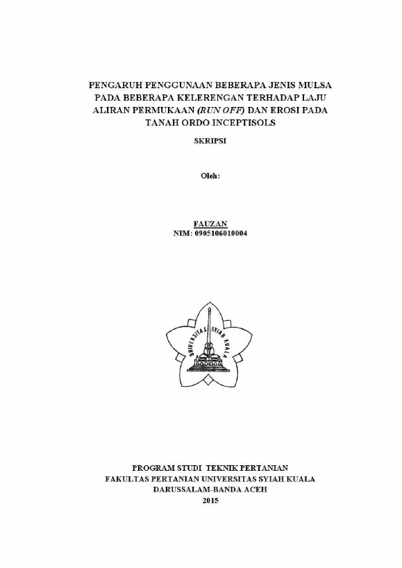Baca Juga : PENGARUH MULSA JERAMI DAN KEMIRINGAN LERENG TERHADAP LAJU ALIRAN PERMUKAAN DAN EROSI PADA TANAH INCEPTISOLS (Taufik Velayati, 2015)