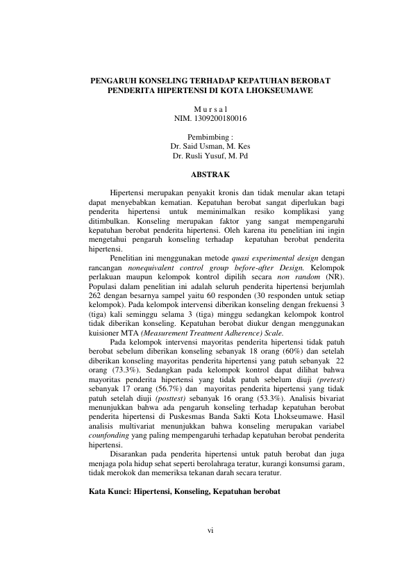 Baca Juga : FAKTOR-FAKTOR YANG BERHUBUNGAN DENGAN KEPATUHAN BEROBAT PADA PENDERITA HIPERTENSI DI KLINIK SUMBER SEHAT DESA SINYEU INDRAPURI ACEH BESAR TAHUN 2013 (Mara Isnaini, 2023)