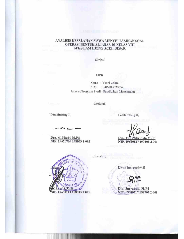 Baca Juga : ANALISIS KESALAHAN SISWA MENYELESAIKAN SOAL OPERASI BENTUK ALJABAR DI KELAS VIII MTSS LAM UJONG ACEH BESAR (YENNI ZAHRA, 2016)