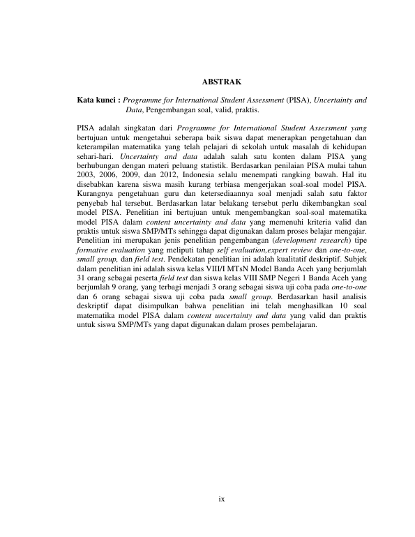 Baca Juga : PENGEMBANGAN SOAL MODEL PROGRAMME FOR INTERNATIONAL STUDENT ASSESSMENT (PISA) PADA MATERI QUANTITY UNTUK SISWA SMP (Mentari Rahmawati, 2016)