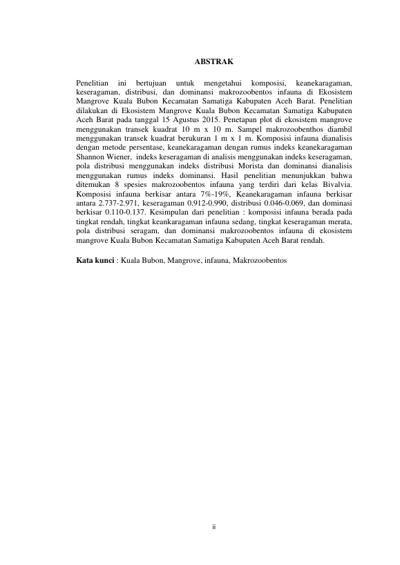 Baca Juga : KELIMPAHAN KEANEKARAGAMAN DAN DOMINANSI EPIFAUNA BENTIK EKOSISTEM MANGROVE DI GAMPONG KUALA BUBON KECAMATAN SAMATIGA KABUPATEN ACEH BARAT (ahmad afrizal, 2016)