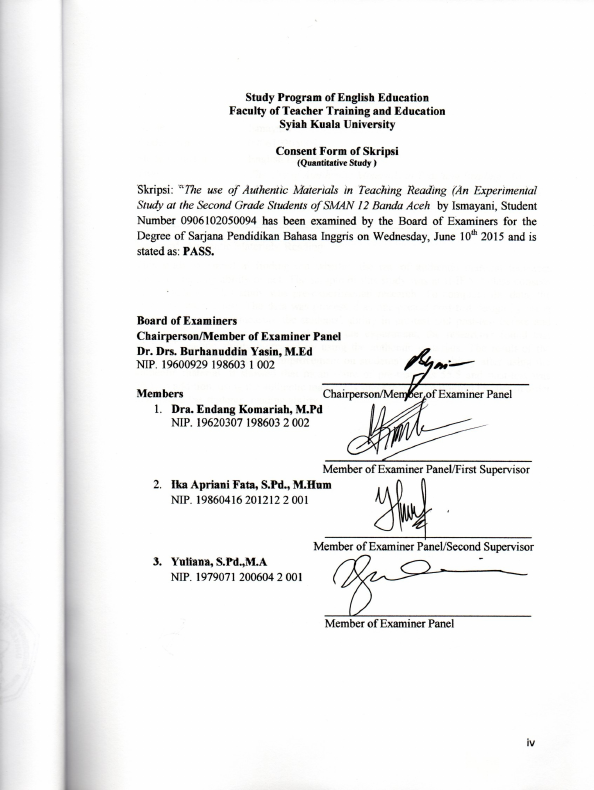 Baca Juga : USING THE AUTHENTIC MATERIAL THROUGH GROUP WORK ACTIVITY IN TEACHING READING COMPREHENSION (AN EXPERIMENTAL RESEARCH AT THE SECOND GRADE STUDENTS OF SMP NEGERI 7 BANDA ACEH) (Helvirra Rossa, 2017)