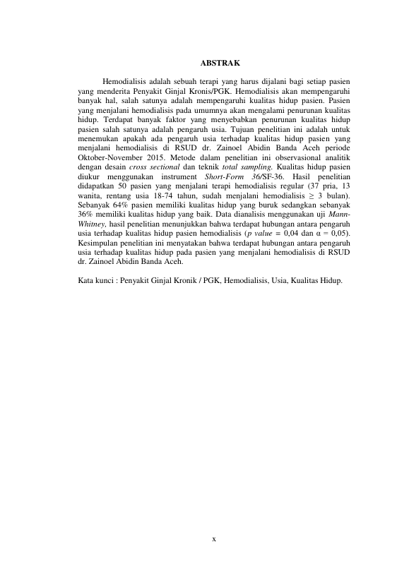 Baca Juga : HUBUNGAN ANTARA KEPATUHAN MENJALANI HEMODIALISIS DENGAN KUALITAS HIDUP PADA PASIEN PENYAKIT GINJAL KRONIK DI RUMAH SAKIT UMUM DR ZAINOEL ABIDIN BANDA ACEH (Virdayani, 2018)
