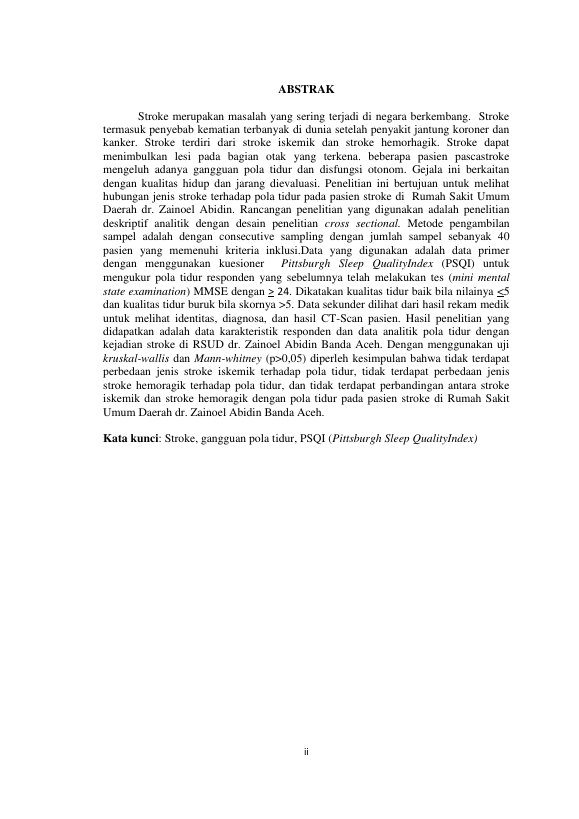 Evira Agustina Putri, PERBANDINGAN JENIS STROKE TERHADAP POLA TIDUR PADA PASIEN STROKE DI RUMAH SAKIT UMUM DAERAH DR. ZAINOEL ABIDIN. Banda Aceh Universitas Syiah Kuala,2016