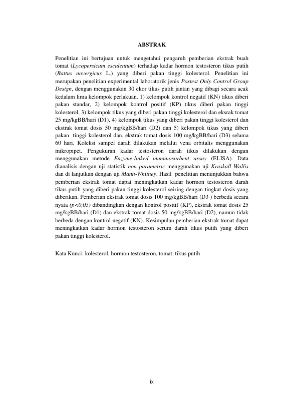 Baca Juga : PENGARUH PEMBERIAN EKSTRAK TOMAT (LYCOPERSICUM ESCULENTUM) TERHADAP KADAR TESTOSTERON SERUM TIKUS PUTIH (RATTUS NOVERGICUS)YANG DIBERI PAKAN TINGGI LEMAK (rovindo edi viktor, 2015)