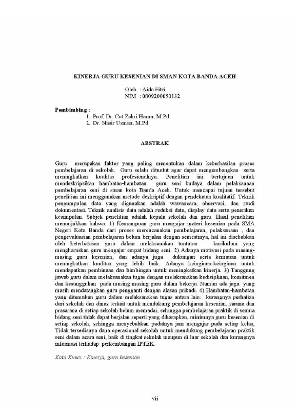 Baca Juga : KINERJA GURU KESENIAN DI SMAN KOTA BANDA ACEH (AIDA FITRI, 2016)