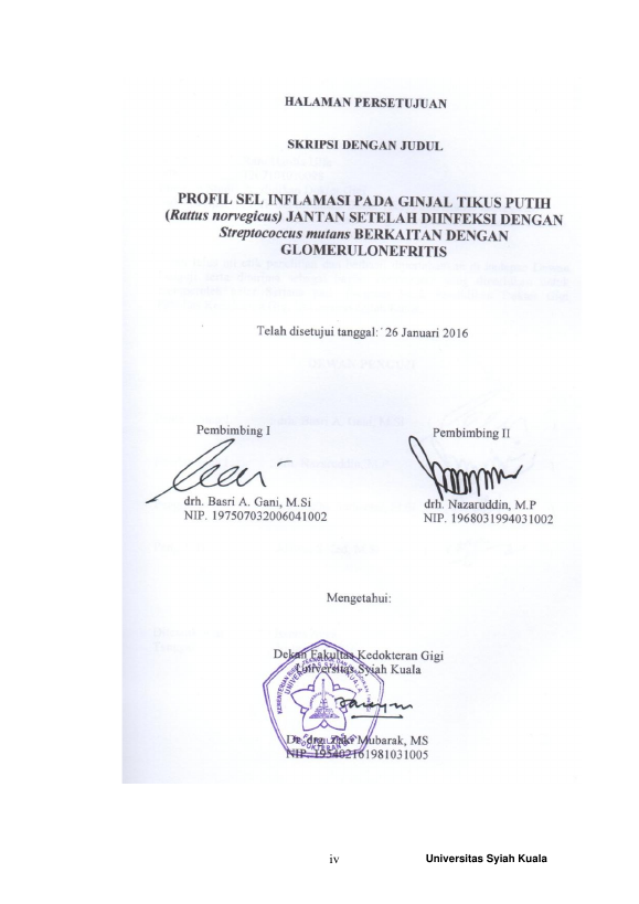 RANI HARDIA ULFA, PROFIL SEL INFLAMASI PADA GINJAL TIKUS PUTIH (RATTUS NORVEGICUS) JANTAN SETELAH DIINFEKSI DENGAN STREPTOCOCCUS MUTANS BERKAITAN DENGAN GLOMERULONEFRITIS. Banda Aceh Universitas Syiah Kuala,2016