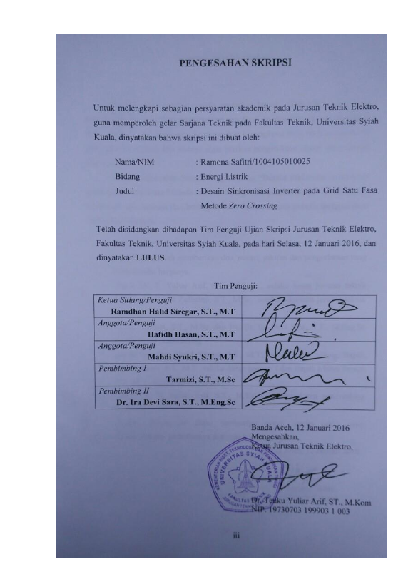 Ramona Safitri, DESAIN SINKRONISASI INVERTER PADA GRID SATU FASA METODE ZERO CROSSING. Banda Aceh Universitas Syiah Kuala,2016