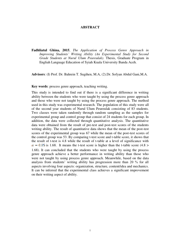 Baca Juga : THE APPLICATION OF GENRE-BASED APPROACH IN IMPROVING STUDENTS’ WRITING ABILITY (AN EXPERIMENTAL STUDY IN MAN BANDA ACEH I) (TIKA ANGGRAINI, 2016)