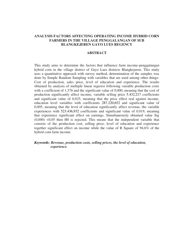 Baca Juga : ANALISIS FAKTOR-FAKTOR YANG MEMPENGARUHI PRODUKSI USAHATANI JAGUNG DI KECAMATAN BLANGKEJEREN KABUPATEN GAYO LUES (MHD SAFRI FITRAH, 2015)
