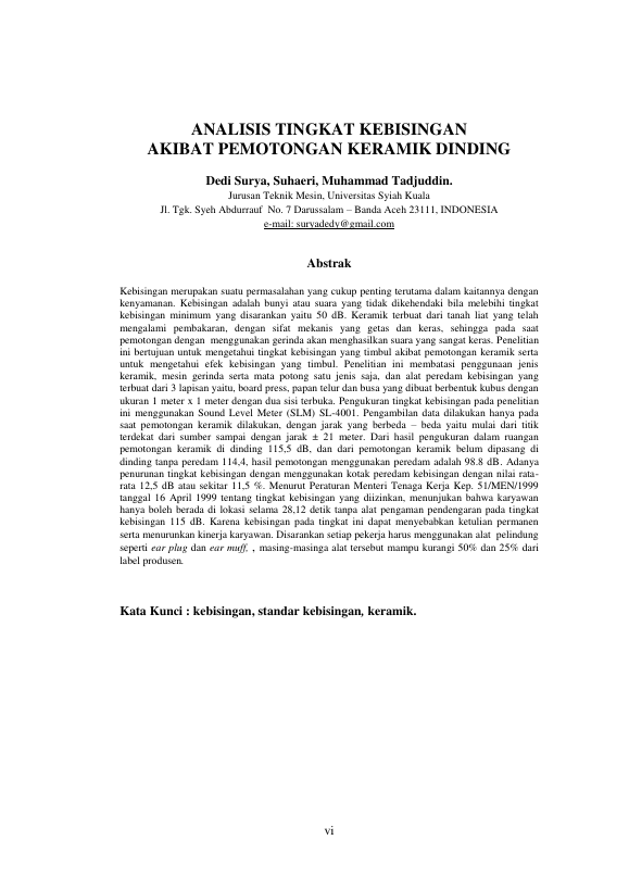 Dedi Surya, Analisis Tingkat Kebisingan Akibat Pemotongan Keramik Dinding. Banda Aceh Fakultas Teknik,2013