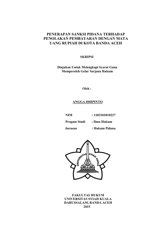 ANGGA DHIPINTO, PENERAPAN SANKSI PIDANA TERHADAP PENOLAKAN PEMBAYARAN DENGAN MATA UANG RUPIAH DI KOTA BANDA ACEH. Banda Aceh Universitas Syiah Kuala,2016