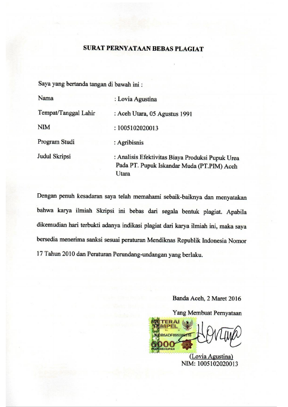 Lovia Agustina, ANALISIS EFEKTIVITAS BIAYA PRODUKSI PUPUK UREA PADA PT.PUPUK ISKANDAR MUDA (PT.PIM) ACEH UTARA. Banda Aceh Universitas Syiah Kuala,2016
