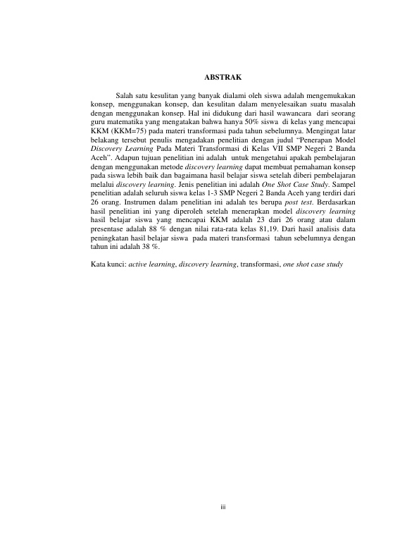 Haris Hidayat Ismil, PENERAPAN MODEL DISCOVERY LEARNING PADA MATERI TRANSFORMASI DI KELAS VII SMP NEGERI 2 BANDA ACEH PADA MATERI TRANSFORMASI DI KELAS VII SMP NEGERI 2 BANDA ACEH. Banda Aceh Universitas Syiah Kuala,2016