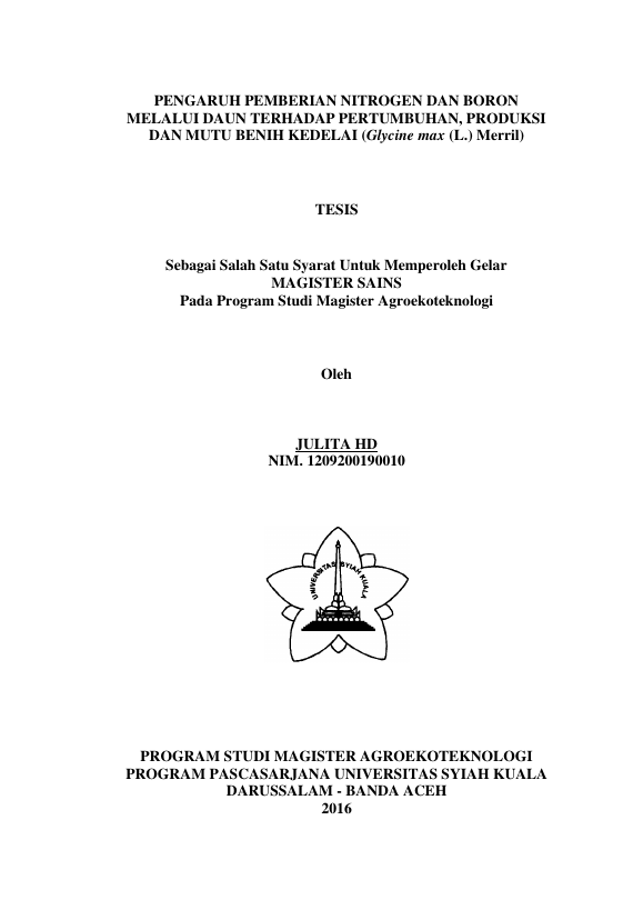 Baca Juga : PENGARUH PEMUPUKAN NITROGEN DAN FOSFOR TERHADAP PERTUMBUHAN DAN PRODUKSI, SERTA MUTU FISIOLOGI BENIH KEDELAI (GLYCINE MAX (L) MERILL.) (Cut Fitri, 2016)
