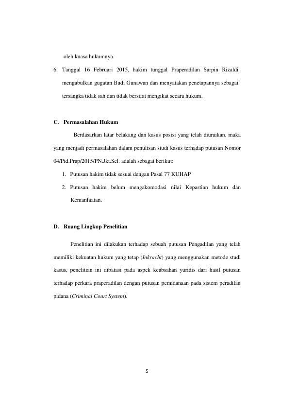 Baca Juga : PELAKSANAAN LEMBAGA PRAPERADILAN DALAM SISTEM PERADILAN PIDANA (SUATU PENELITIAN DI WILAYAH HUKUM PENGADILAN NEGERI BANDA ACEH) (MAYZSAZSA DWI LESTARI, 2019)